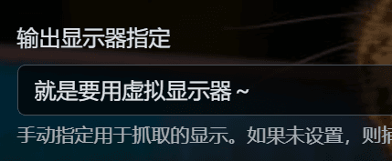 进入配置 audio/video 输出显示器指定 改为 就是要用虚拟显示器 (基地版才行,原版需要先设置好虚拟屏幕再到这里选择虚拟显示器的名字,否则串流的是物理显示器的画面)